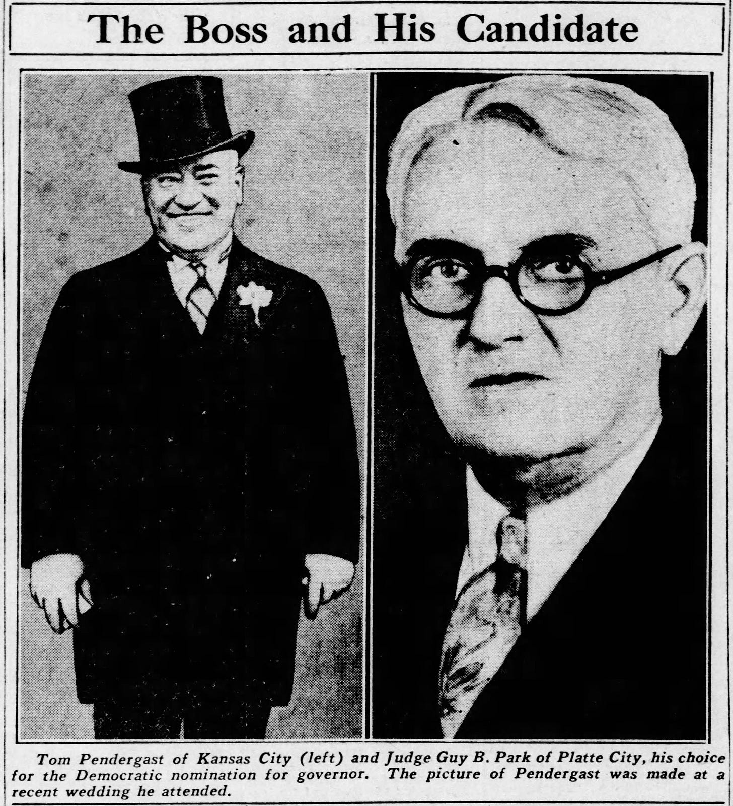 Suddenly Pendergast’s race to state domination stopped dead in its tracks. The anti-Pendergast forces in the party unexpectedly had a golden opportunity to unite behind any number of young, rising candidates in their stable, effectively blocking a machine-chosen replacement.